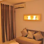 Along with tea/coffee making equipment, the apartment is equipped with a fully furnished kitchen that includes a microwave oven, a fridge, and kitchenware. The nearest bus stop Plateia Paulou Mela is a few minutes' drive from the 28 m^2 apartment.